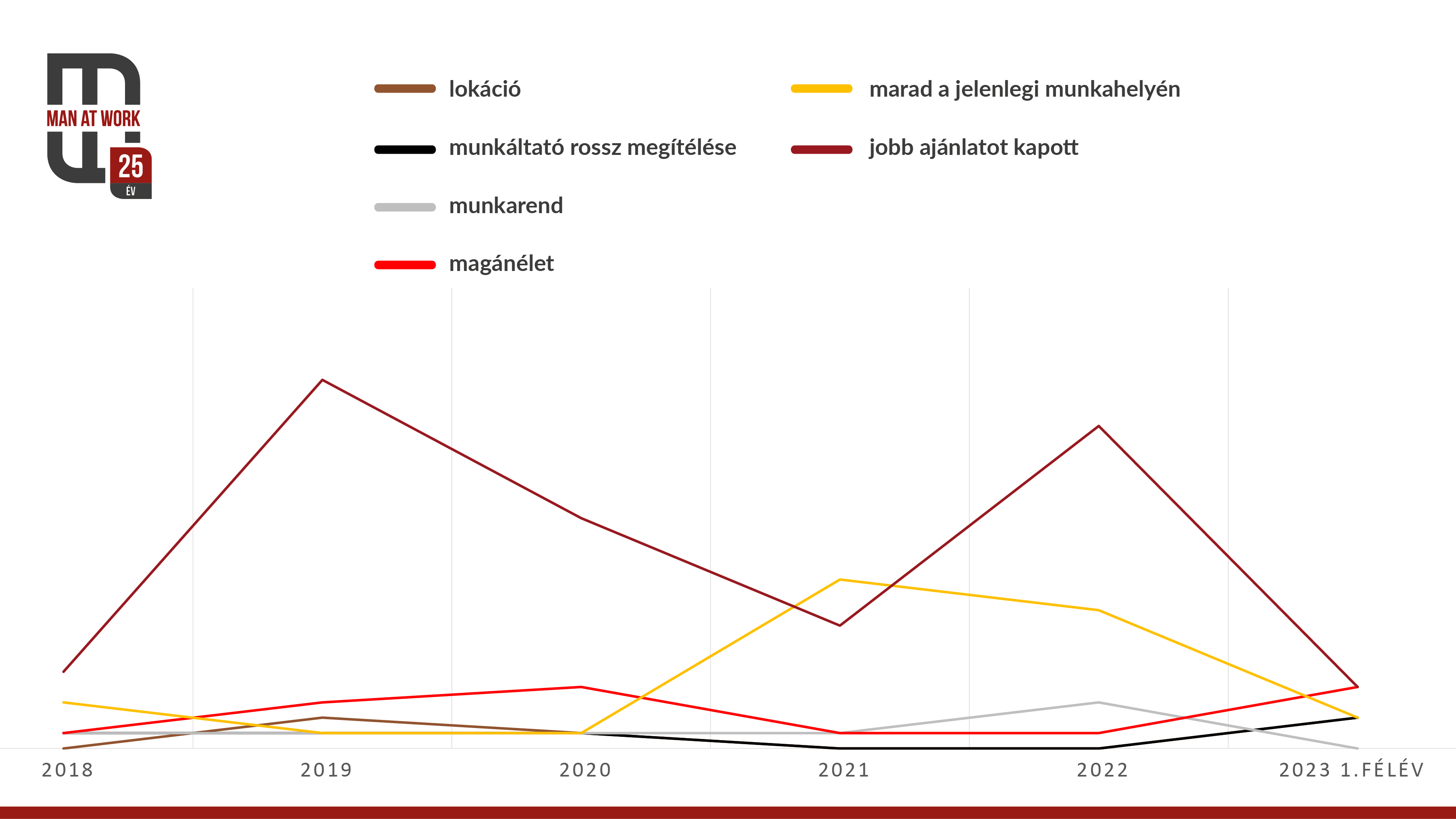 „Fontos megértenünk a munkavállalók preferenciáit, ezért 2018 óta naprakészen vezetjük az állásajánlatok visszautasításának okait. A szellemi - szakmai nyelven fogalmazva a fehér- és a kurrens, kék galléros munkakörökbe való toborzás számait vizsgálva, tendenciaként figyelhető meg, hogy minden negyedik állásajánlattal megkínált jelölt visszalép - mondta Ottó Csaba, a Man at Work ügyvezető igazgatója.